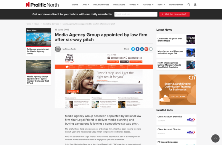 Learn more about Media Agency Group's newest client, Your Legal Friend. Read more about some of the press coverage.